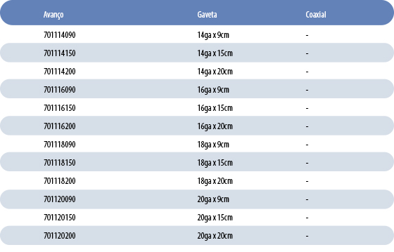 Compatibilidade com agulha coaxial, permitindo passagem da agulha de biópsia quando necessário