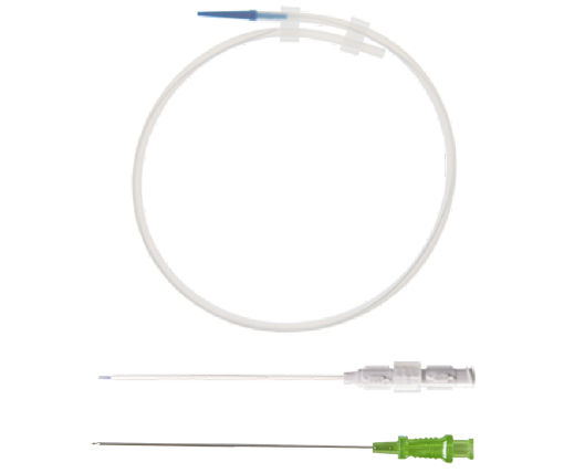 O cateter de acesso periférico V-Stick™ permite o acesso vascular periférico para facilitar de maneira atraumática a passagem de um fio Guia 0.035” ou 0.038″. O cateter vem com uma agulha de punção 21g x 7cm que possui ou não ponta ecogênica. Um fio guia de nitinol com 0.018” x 40cm ponta flexível e uma bainha introdutora co-axial de 3Fr a 4/5Fr diâmetro externo.