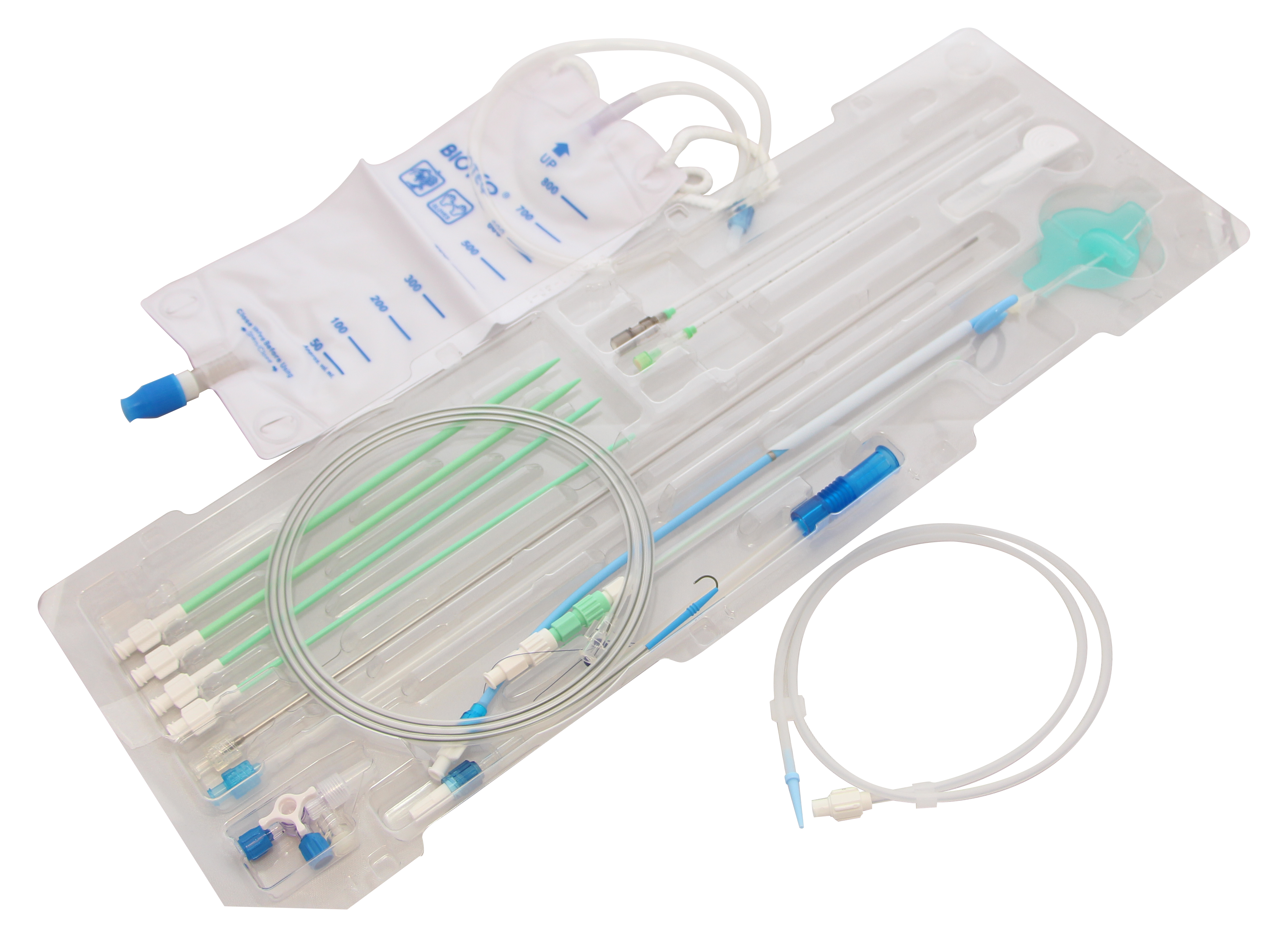O diferencial deste modelo é a inclusão do cateter de micropunção, tornando o conjunto ainda mais completo e pronto para uso, fornecido em bandeja com todos os principais acessórios do procedimento.